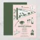 En söt handritad design med illustrationer i tema bachelorette camping. Denna gröna och rosa camp bach-helgdesign är idealisk för glamping camping bachelorette-helger, camping flickresor bachelorette-fester i berg, skog eller sjö-destinationer.