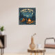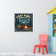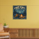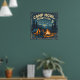 Denna vintageinspirerade utomhusafton fångar den tysta magin en natt i skogen. En ensam campare sitter vid en glödande lägereld under höga tallar och en stjärnfylld himmel, avbildad i platta illustrativa former med en klassisk, träsnittsinspirerad estetik. Dämpade blåtoner och djupa natttoner balanserar värmen från de eldgula orangefärgerna, medan en sliten bläckstruktur ger äkta, tidssliten karaktär. Böjd ovanför scenen, fungerar budskapet ”Camp More. Worry Less.” som en försiktig påminnelse om att sakta ner, koppla av och återansluta till naturen. Perfekt för stugor, husvagnar, ateljéer eller någon som känner sig som hemma under stjärnorna.