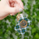 Campbell crest märke omgiven av en rem och spänne över klänning tartan bakgrund. Anpassad text på båda sidor.
