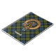 Campbell vapensköld-bricka omgiven av ett band och ett låsbeslag över tartanbakgrunden. Anpassningsbar.