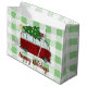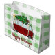 Ha en fin jul med de här fantastiska stora presentpåsarna. En söt kamper som drar en Julgran-design fäster varje sida över en rustisk vit och ljust grönt plaid mönster. Ha en lycklig-helgdag!