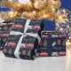 Den här julklappningen av pappra har en marin blå bakgrund med en röd skåpbil/lastbil-kamper/släpvagn, Julgran och presenter. Anpassa den efter dina behov. Du hittar matchande produkter i min butik.