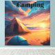 AI digital konst. Camping är min terapi. Vintagefärger. Tält vid soluppgång eller solnedgång med havet i bakgrunden på en strand. Campinginspirerad konst.