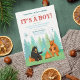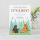 Den här strålande designen är perfekt för en utomhuscamping med temat babydusch. I den moderna utformningen ingår trädjur runt lägerelden. Anpassade.