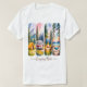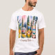 Den här vita t-tröjan har fyra lodräna, målat rand som skildrar camping inslag. Från lämnat till höger: en kamper i ett landskap i ett kuperat bergsområde, en campingbrand i skymningen, en skogsscen och en hammock under en stjärnnatt himmel. Under texten "Camping Mode" skrivs avslappnadens skriptteckensnitt. Utformningen väcker själva kärnan i en camping i resa.