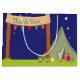 Camping Födelsedagsfest Sleepover Khaki Grönt Large Gift Bag för att presentera en liten gåva till dina gäster som ett minne av ditt speciella tillfälle. Texten kan ändras till kostym enligt era egna önskemål. Konstverk av Jessica Weible (80)