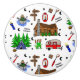 Bilder av loggskåp, RV, Camping verktyg, tält, fiskebåt och annan söt grafik.