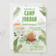 Designat för vår Camping Birthday-samling har det här anpassadets inbjudningskort djungelskog, baksäck, camping lastbil, bonfire och dekorative typsnitt. Matchande objekt är tillgängliga.