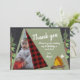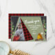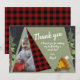 Camping tält med ett platt bildkort tack. grönt campar tält med träd och campingeld under ett schalkboard stil natt himlar. Röda och svarta buffelpläterade accenter. Ändra texten som du vill.