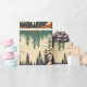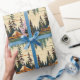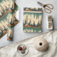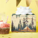 Födelsedagspressen i vintage färg grönt, brunt och orange kampar med tält och gräs träd.