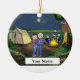 Campingpar, tre barn julgransprydnad keramik