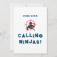 Campus Ninja | Borgpartsinbjudan till inbjudan att lämna projektkort för ninja-krigshärjade campus party, broderskapets party och party, ungdomsforskarnas prioritet, anpassade med personlig och färg. Anpassa roligtens kod på baksidan