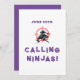 Campus Ninja | Borgpartsinbjudan till inbjudan att lämna projektkort för ninja-krigshärjade campus party, broderskapets party och party, ungdomsforskarnas prioritet, anpassade med personlig och färg. Anpassa roligtens kod på baksidan