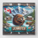 Canadian Beaver Holding Gren nära berget Sjö Fyrkantig Klocka