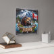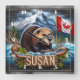 Canadian Beaver nära Vatten med Maple Löv Flagga Fyrkantig Klocka