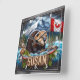 En kanadensisk bäver samlas vid vatten, omgiven av lush grey och en berggrund, som stolt visar mapeln löv flagga.