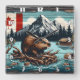 Canadian Beaver on a Log by Sjö With Mountains Fyrkantig Klocka