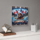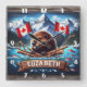 Canadian Beaver With Flaggor in Mountain Setting Fyrkantig Klocka