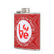 Hip-kolven med rött brev läste KÄRLEK med en hjärtformade kanadensisk flagga för O. Lös när som helst, men särskilt på Alla hjärtans dag. Underbart sätt att kärlek om din kanadensiska kultur, arv och härkomst. Design visar i mitten av den vita ryggstödscirkeln av fyrkantiga fyrkanter på en röd bakgrund med liknande texturerat utseende. Anpassa höftkolven med ett speciellt meddelande om en gåva eller anpassa den med år, helgdag och datum.
