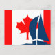 Canadian Flagga Sailing Boat/ Yacht Nautical Postcard. Segeljakttsilhuette och kanadensisk flagga Maple Löv Canada nautical postcard.