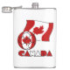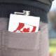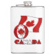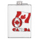 Roligt för fotboll eller fläkt. Har en fotboll eller fotboll som alla är dekorerade med Kanadas flagga. Den står framför en viftande kanadensisk flagga. Under den finns ord KANADA i rött och vitt brev.