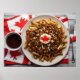 Detta är en AI-genererad bild. Jag lärde mig om Poutine och jag var tvungen att göra en design av det. Jag såg en video och fick veta att franskens frites täcktes i grus med ostostostostskorg. Med den här designen ville jag ha plattan på den kanadensiska flagga. Jag gillade att skogen under flagga är grått. Jag tänkte inte använda designen eftersom jag trodde att kopp på kaffet såg ut som på plattan. Då tänkte jag att det inte ser ut som att kaffet kopp är sitta på tallriken. Och jag gillade maple löv på ostostmassan i mitten på tallriken.