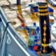 En konstkonstruktion av en smalbåt tak med ornat skorsten. vatten kan och mopp. Kanalbåtar, som i Förenade kungariket kallas smalbåtar, användes ursprungligen för att transportera varor runt land. De används nu främst för fritid och lockar människor från hela världen att njuta av vår landsbygd. Dessa båtar ser mycket söt ut med sina ljusa färgader, traditionellt blåa, röda eller grönt. Blommor och slottsdesigner är också en del av de mer traditionella båtarna.
