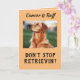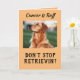 Uttryck ditt stöd till en canceröverlevare med ett positivt ”Sluta inte apportera”-kort med golden retriever. Hund-championen poserar starkt och modigt. "Cancer är tufft", men versen inuti ger mod och omtanke.