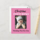 Uttryck dina uppriktiga önskningar till en bröstcanceröverlevare med ett roligt "cancer suger"-meddelande om välbefinnande. Det djärva svarta och gråa kortet med rosa inslag har en inspirerande bild av en rolig grinig flicka. Den positiva versen "tänk rosa för dig" kommer att skicka dina stödjande och omtänksamma tankar.