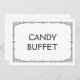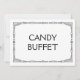 Enkelt och elegant svart och vit konst deco stil "Candy Buffet" bröllop-tecken. Den här "Candy Buffet" bröllop-skylten ser underbar ut att tryckas på en papper, om du behöver något mer traditionell använda, Laid, Linen eller Columned, för en använda som känner sig som den artisan Kraft, om du vill lägga till ett glam, använda Luxe. Om du klickar på knappen "anpassa den" kan du öppna redigeraren verktyg och välja en annan bakgrund färg. Det här är en platt tryckt 5-tums x 7-tumsskylt som ser ut som elegant i bild ram.