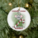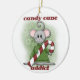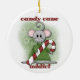 Lite grått-mus med en stor röd och vit randig candy cane och text som lyder "Candy cane Addict" på en keepsaké-helgdag-prydnad som bara är för söt!