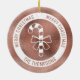 Desteis vita candy cane-silhuettekonst på en faux ro guld rosa foil struktur bakgrund (NOT REAL FOIL). Det finns en vit cirkel på gräns som lyder: "God jul" två gånger, och på grund finns det ett anpassbart textområde för en familjetext av namn eller annan anpassningsbar. OBSERVERA: folien är inte äkta. Det är en digitalt skapat bild som kommer att skrivas ut på produkten.