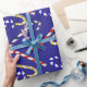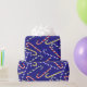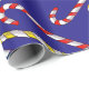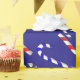 Polkagrisar i rött, grönt, blått och gult på blå bakgrund.
