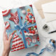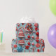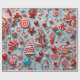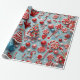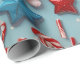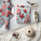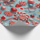 Njut av säsongens magi med denna livfulla julpapper design som presenterar en fantasifull spridning av röda och vita godisbitar, pepparmintssnurror, lollipopar, festliga dekorationer och julgodis på en sval vinterblå bakgrund.