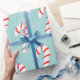 Blå julomslutning papper med candy cane bilder överallt. Använda det att slå in dina presenter under den kommande säsongen. Candy cane är en av mina illustrationer. Du kommer inte att hitta det här inslaget pappert någon annanstans. Du kan anpassa bakgrunden som du klickar på i färg för att anpassa den ytterligare. Illustrerad och designad av Patricia Alvarez.