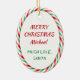 Föreställ er ditt barns glädje över att ha en julprydnad från Jultomten till honom eller henne! Den här söta prydnaden har en vintage bild av en klassisk jultomte som har en gåva paket. Bilden ramas med söt röd, grönt och vit candy cane rand mönster. Baksidan av dekorementet har samma strimlade ram och flera texttexter fält som du kan anpassa. Om du så vill kan du lätt göra det från Mamma & Pappa, eller någon annan, ställe i Santa.