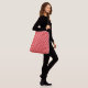 Dam stor Crossbody Bag i reflekterande rosa-bläckformer på en bas färg av rött.
