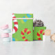 Inpackning som är papper med randiga candy cane av rött med vit, grönt och blått på en grön bakgrund, perfekt för helgdaggåvainpackning!