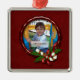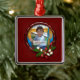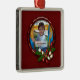 Anpassa den här vackra traditionella prydnaden med ditt eget foto. Shiny red-skaloped ram är förskönat med candy cane, rött band och julklapp gröntar. Bakgrunden är rikens röda dämpare.