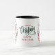 På två sidor av Helgdag mugg bär en rolig liten gnom en mönster tomtehatt med en spricka och låter honom få ett fågelljus på handen. Förutom honom finns den färgstarka texten som säger "JOY". Ett rött och grönt godis i rand gräns avslutar designen. I mitten av mugg står en stiliserad text i rött och grönt som säger "God jul" och "Gott nytt år".