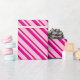Omslagning papper i diagonalt candy cane rand av djup fuchsisk rosa på en ljuspärmints rosa bakgrund
