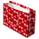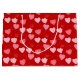 En mönster av allmänt förekommande konversationshjärtan i godiset som läser "Kärlek You", "Be Mine", "Kiss Me", "XOXO" och "Hug" i rött, ro och rosa som överlappar en Valentinröd bakgrund