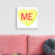 A lime green candy heart that says, "ME."