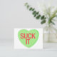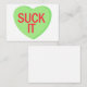 Ett grönt godis hjärta som säger, "SUG IN I."