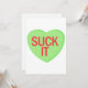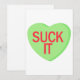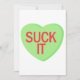 Ett grönt godis hjärta som säger, "SUG INTE PÅ DET."