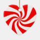 Julprydnadsföremål som visas i en hjärtform med ett sött godis peppermint-tryck. Anpassa det här objektet eller köp som det är.
