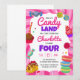 Fira din lilla älsklings fjärde födelsedag i en magisk Candy Land! Denna fantasifulla inbjudan har en ljus och färgrik design med godis och sötsaker i överflöd. Den är perfekt för en fest fylld med cupcakes, godisstavar och allt sött!