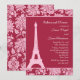 Ett vackert, blommigt dammmönster accentuerar Eiffel Torn på inbjudan till färgaden. Det visas på den grundläggande pappra, men jag rekommenderar vikten och struktur på pappra linne. Inbjudan är en del av fullt Candy Red i Paris.