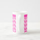 En mycket söt Bone China Coffee Mugg, med en mönster av dekorativa chevron-former i godis rosa och vitt. Du kan lägga till text i det enkla bandet överst eller bara lämna det rent.