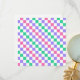 A vibrant checkerboard pattern featuring alternating pastel purple, pink, and green squares against a white background, creating a playful, colorful effect.